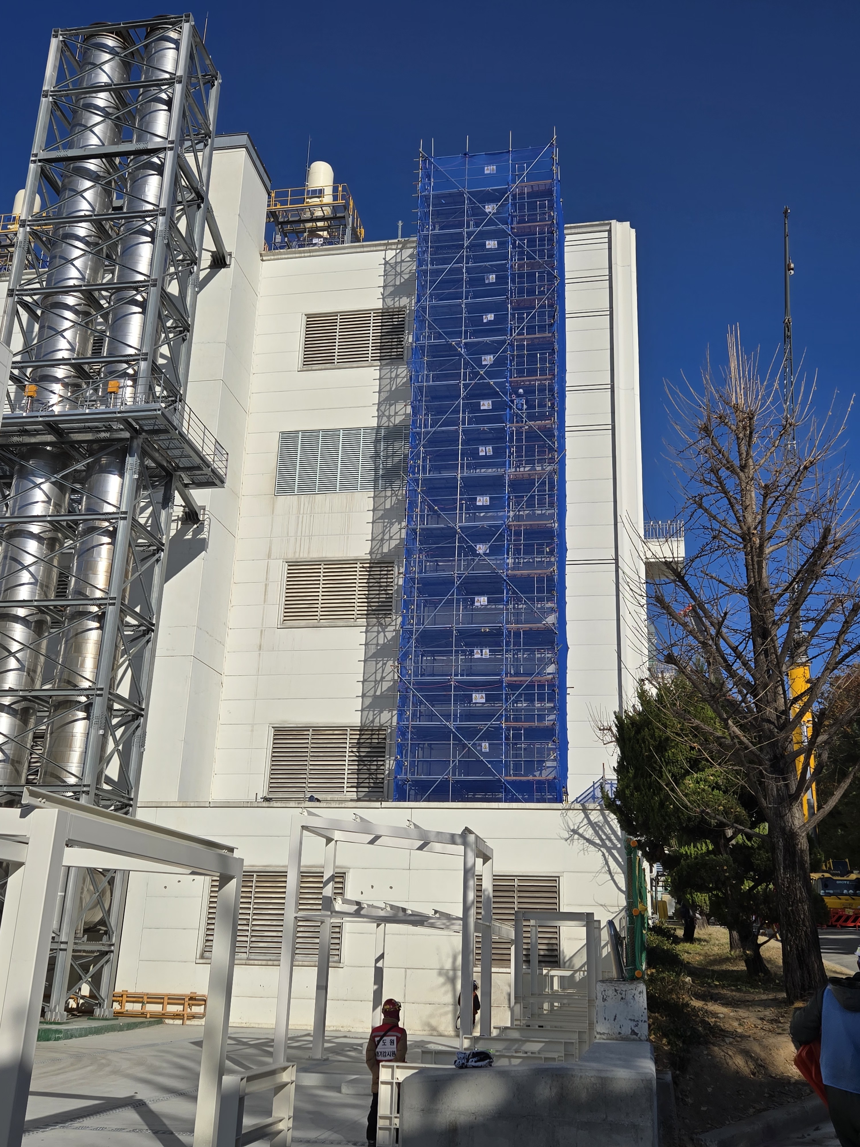 청주하이닉스 M8공장 덕트설치용 비계시공 (높이 30m)